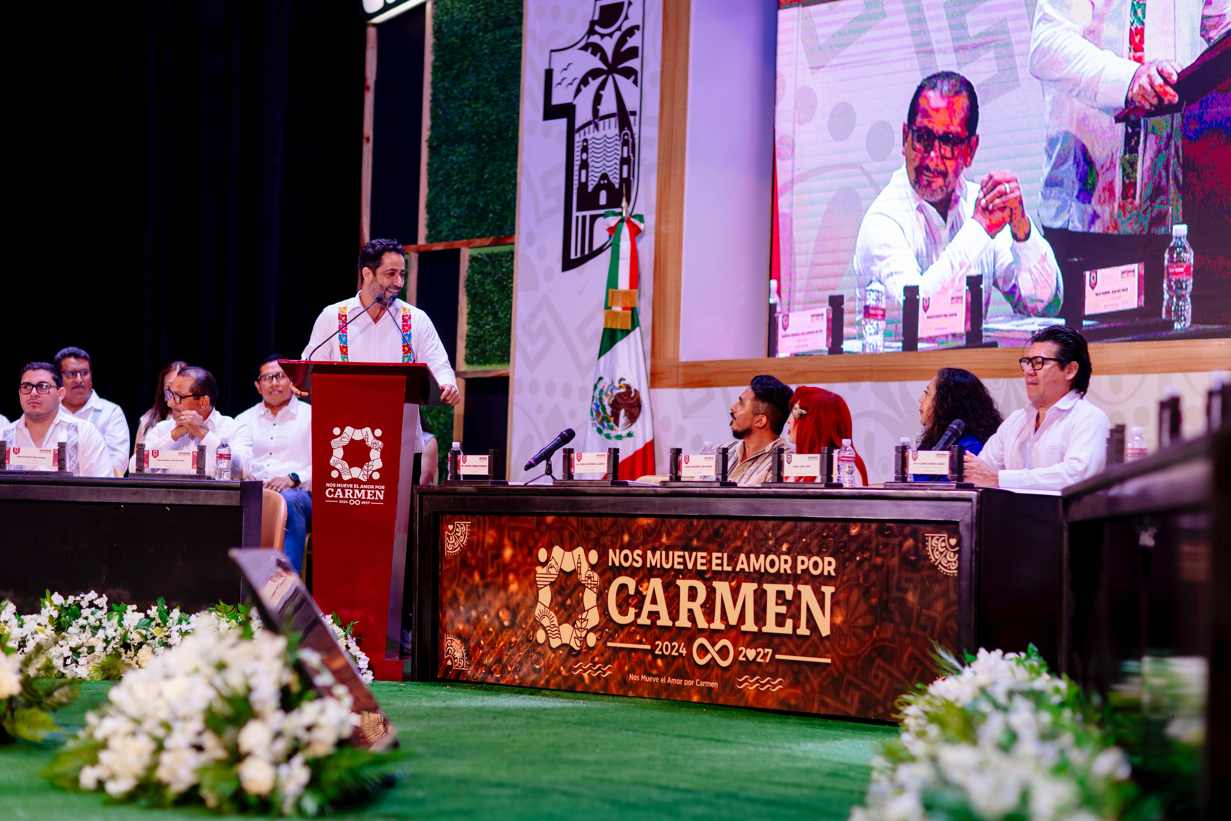 ANTE LA GOBERNADORA LAYDA SANSORES SAN ROMÁN, EL ALCALDE PABLO GUTIÉRREZ LAZARUS RINDIÓ SU PRIMER INFORME A LA COMUNIDAD CARMELITA