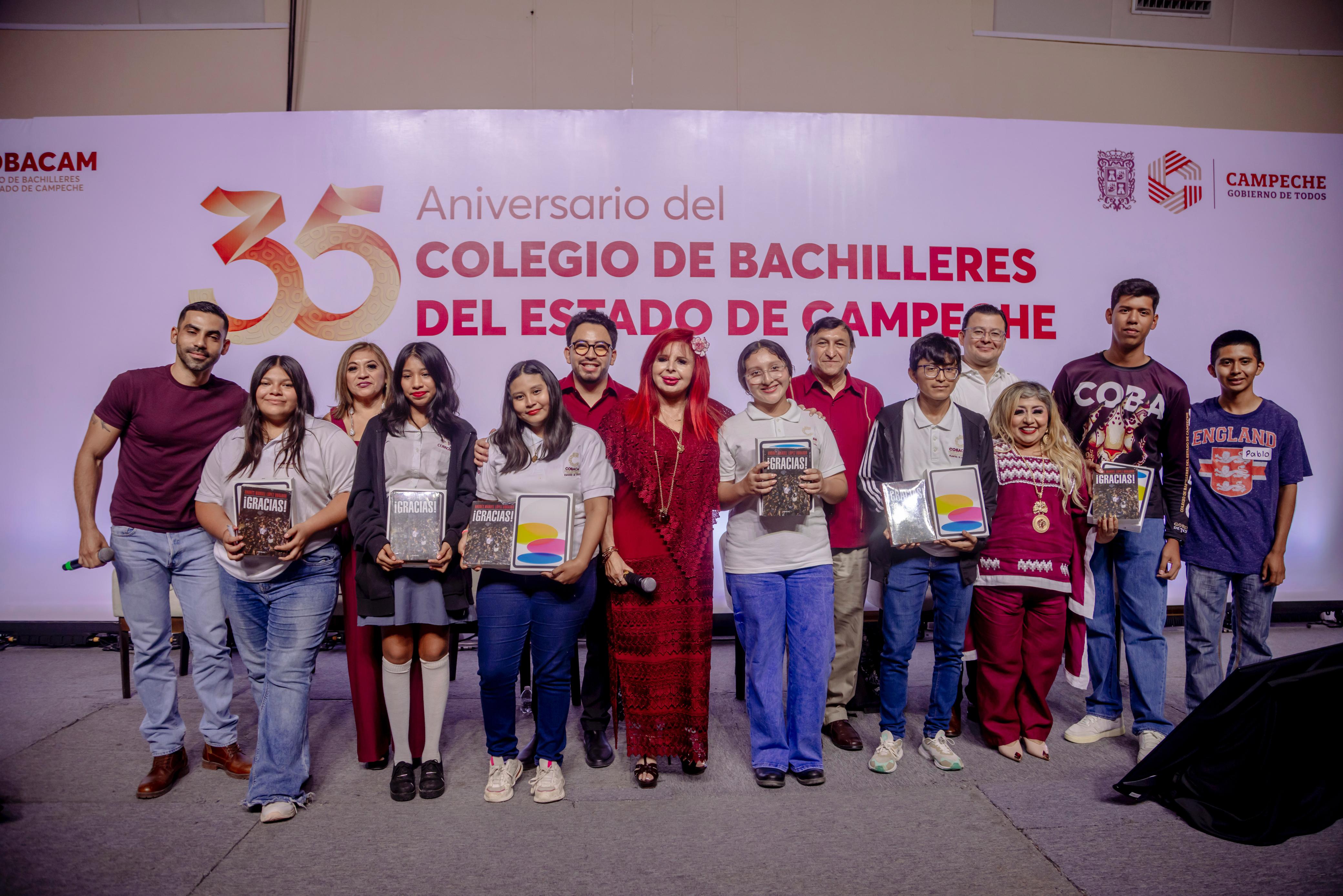 En una ceremonia llena de energía, entusiasmo y profundo carácter humano, la Gobernadora, Layda Sansores San Román, encabezó la conmemoración del 35 Aniversario del Colegio de Bachilleres del Estado de Campeche (COBACAM) en el Centro de Convenciones y Exposiciones “Campeche XXI”.