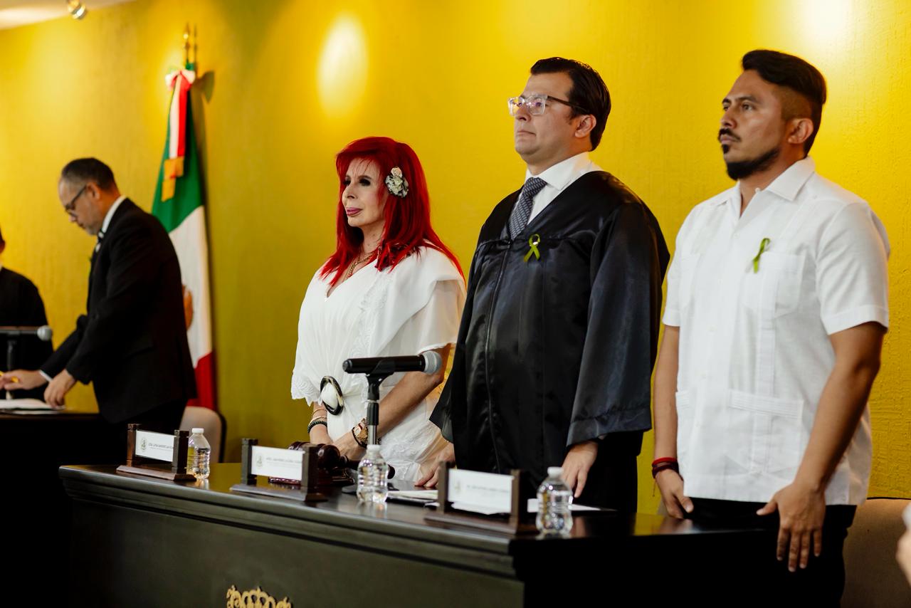 En un acto solemne efectuado en el auditorio Manuel Crescencio Rejón y Alcalá, de la Casa de Justicia, sede del Poder Judicial del Estado, la gobernadora Layda Sansores San Román entregó un reconocimiento póstumo al magistrado presidente del Tribunal Superior de Justicia del Estado (TSJE), Manuel Enrique Minet Marrero, en un emotivo evento al que asistió su esposa Avril de la Cruz Pereyra y sus familiares.