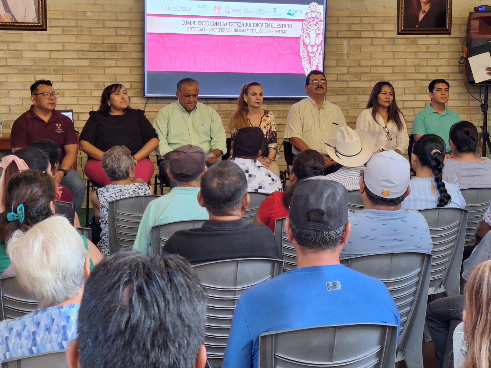 En el evento estuvieron presentes la directora general de CODESVI, Elvira de la Peña Abreu; la representante de la Procuraduría Agraria en el Estado, Margarita Plácido Rivera; el encargado de la representación del Registro Agrario Nacional, Gualberto López Martínez; y el director de Asuntos Agrarios, Martín Antonio Uicab Kuc.